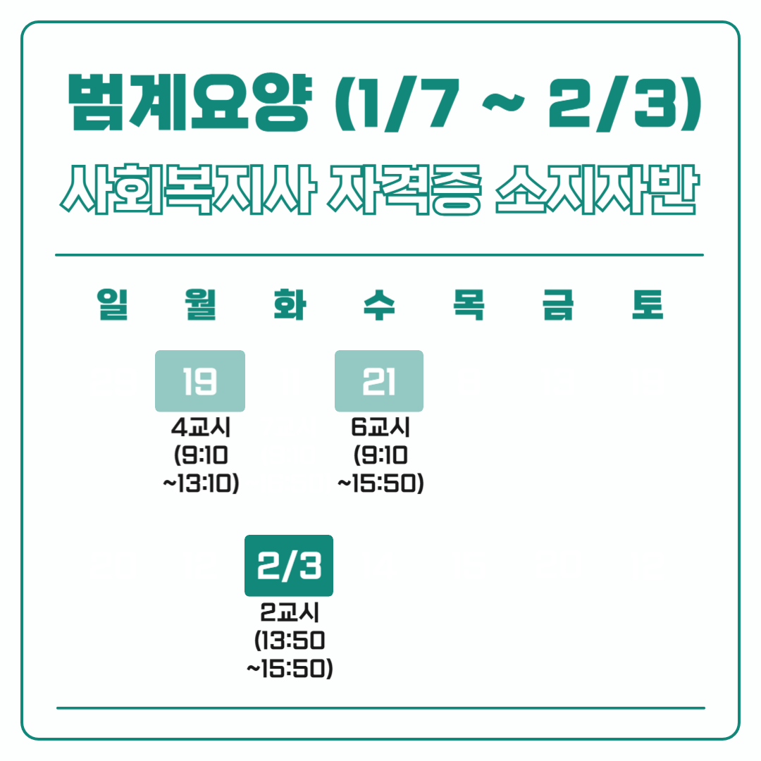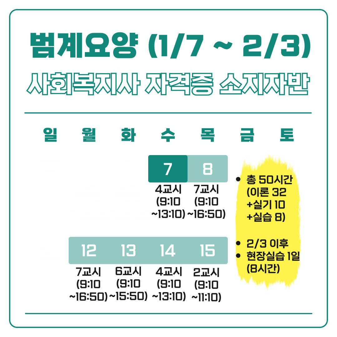 종료 26년도 1월 요양보호사 자격취득과정(사회복지사반) 주간반